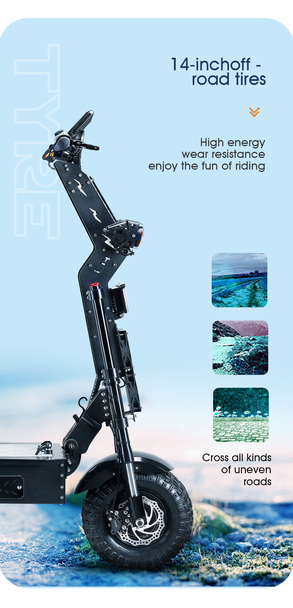 Wheel Size : 14inch Fat wheels ( off road tire ) |
