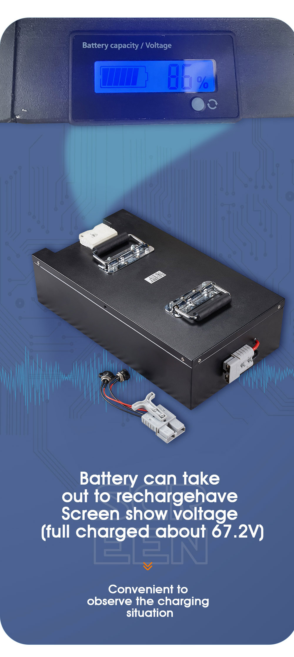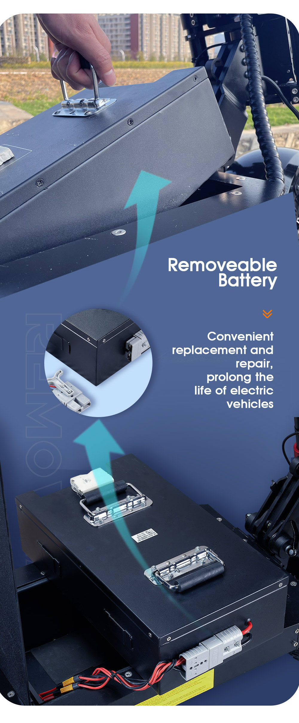 Battery : Removeable 60V 80Ah (Charger input 110V-240V ; Charger Output 67.2V 5a) |