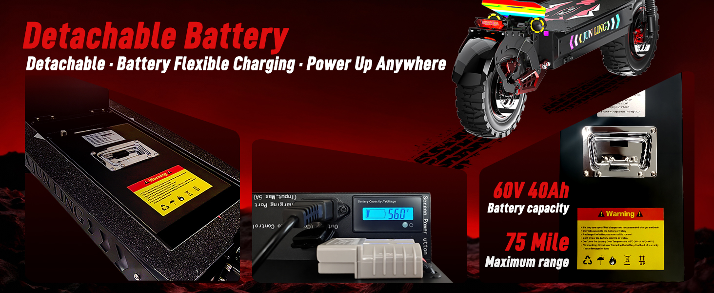 Range / Distance : 75Miles (tested depended on rider's weight 50kgs , flat condition,30 degree weather,fix speed ...) |