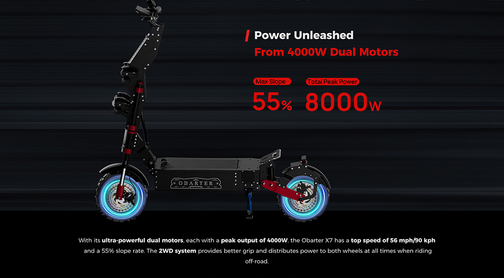 Obarter X7 14inch Fat Tire 60V 8000W Electric Scooter ; Removeable Battery E-Scooter; Kick Scooter